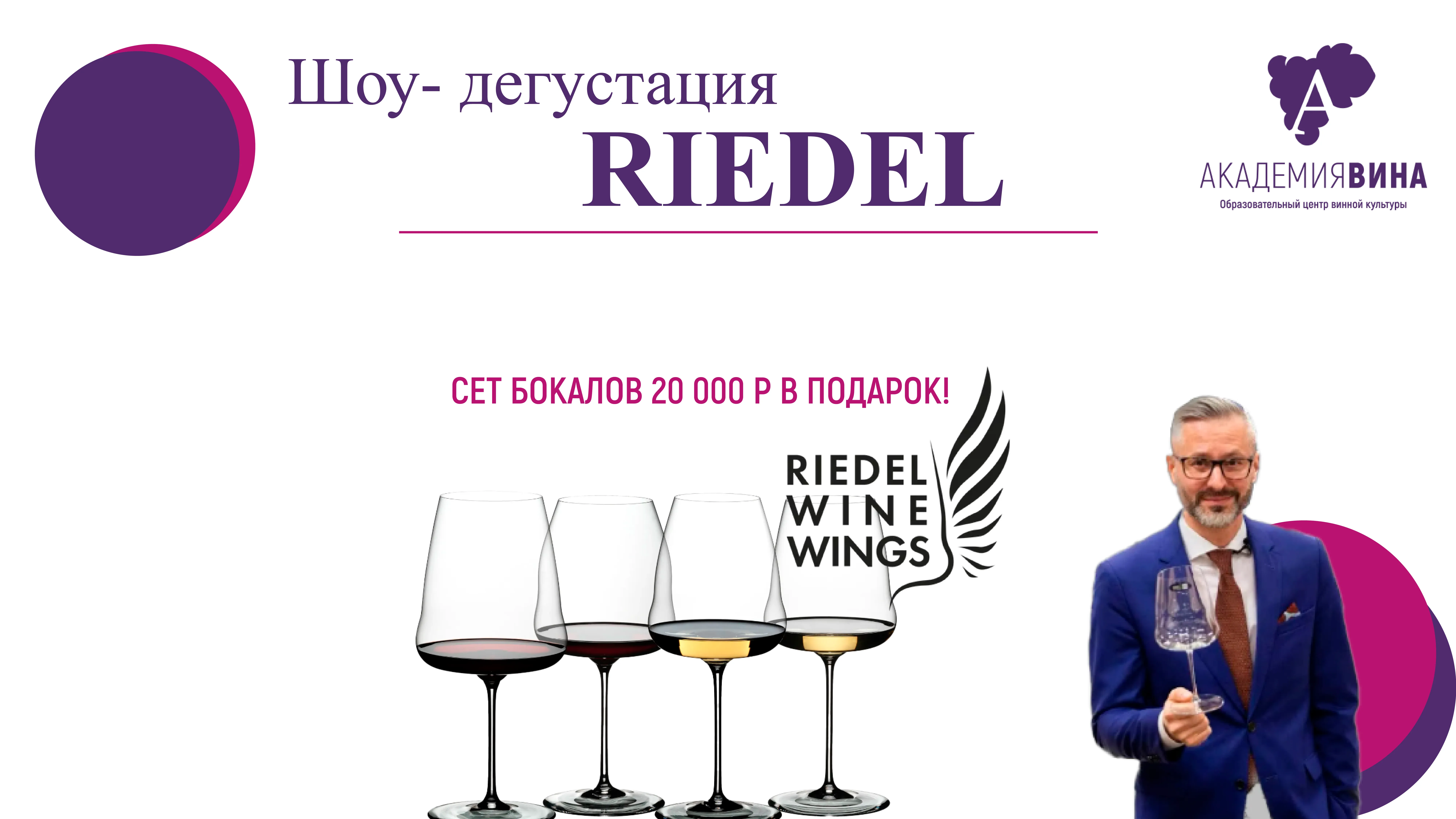 Академия Вина и всемирно известный производитель винных бокалов компания RIEDEL приглашают Вас на сенсорный мастер-класс: дегустация вина в бокалах различной формы. У Вас будет возможность на основании собственных ощущений лично убедиться, что форма бокала действительно имеет значение.